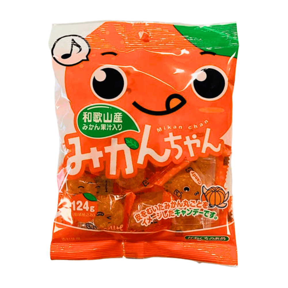 A Bala Japonesa Mikan Chan é uma das mais queridas do Japão! Produzida com suco natural de tangerina da região de Wakayama, famosa pela qualidade de suas frutas cítricas, essa bala conquista pelo sabor autêntico e refrescante.