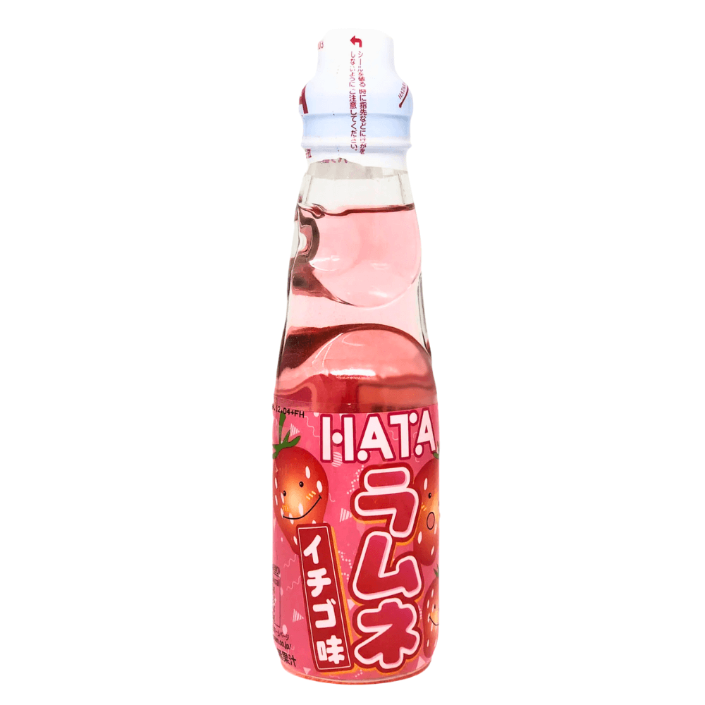 A Bebida Ramune Morango Hata é um clássico refrigerante japonês que encanta pelo sabor e pela experiência! Famosa por sua garrafa de vidro com uma bolinha de gás (Codd-neck bottle), ela oferece uma forma divertida e única de abrir e saborear a bebida. Basta pressionar a tampa com o pino plástico incluso para liberar a bolinha e liberar o gás — um ritual tradicional entre os japoneses, especialmente em festivais e verão.