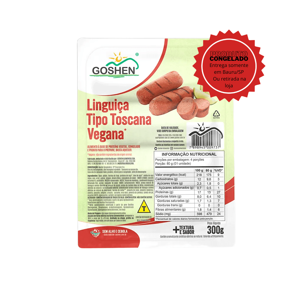 A Linguiça Toscana Vegana da Goshen é uma alternativa deliciosa para quem busca reduzir o consumo de produtos de origem animal sem abrir mão do sabor tradicional.