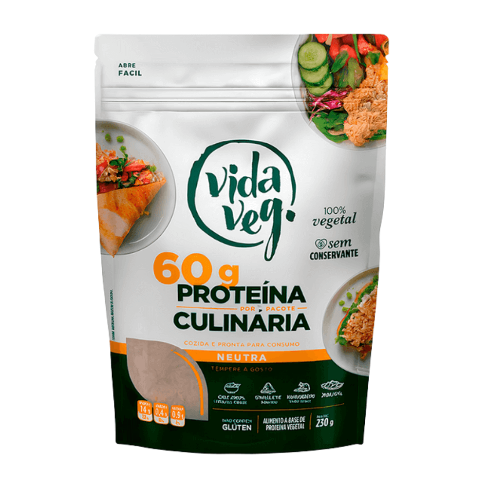 A Proteína Vegetal Culinária Neutra Vida Veg é uma excelente alternativa vegetal para substituir proteínas de origem animal em diversas receitas. Já cozida e pronta para consumo, possui sabor neutro que absorve facilmente os temperos, permitindo grande versatilidade no preparo.